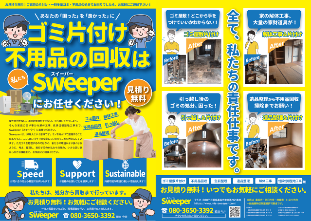 チラシを制作しましたので、下記をクリックしてご覧ください。https://www.mie-sweeper.com/flyer.pdf・・・[ 続きを見る ]